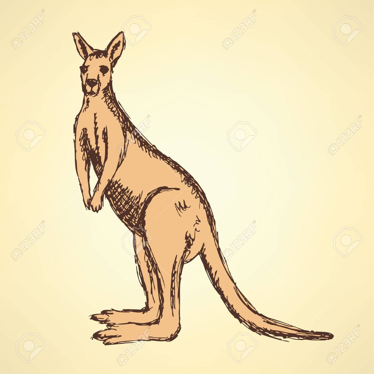 ビンテージ スタイルでオーストラリアのカンガルーをスケッチ ベクトルのイラスト素材 ベクタ Image